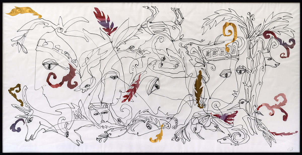 Mit einem einzigen Strich gelingt es der Künstlerin, ein ganzes Universum zeichenhaft komprimiert gekonnt auf's Papier zu bannen.